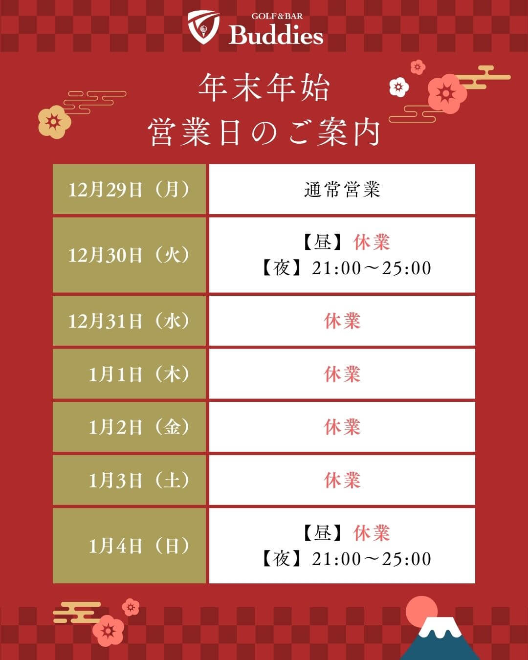 日頃よりGOLF & BAR Buddiesをご愛顧いただき、誠にありがとうございます。